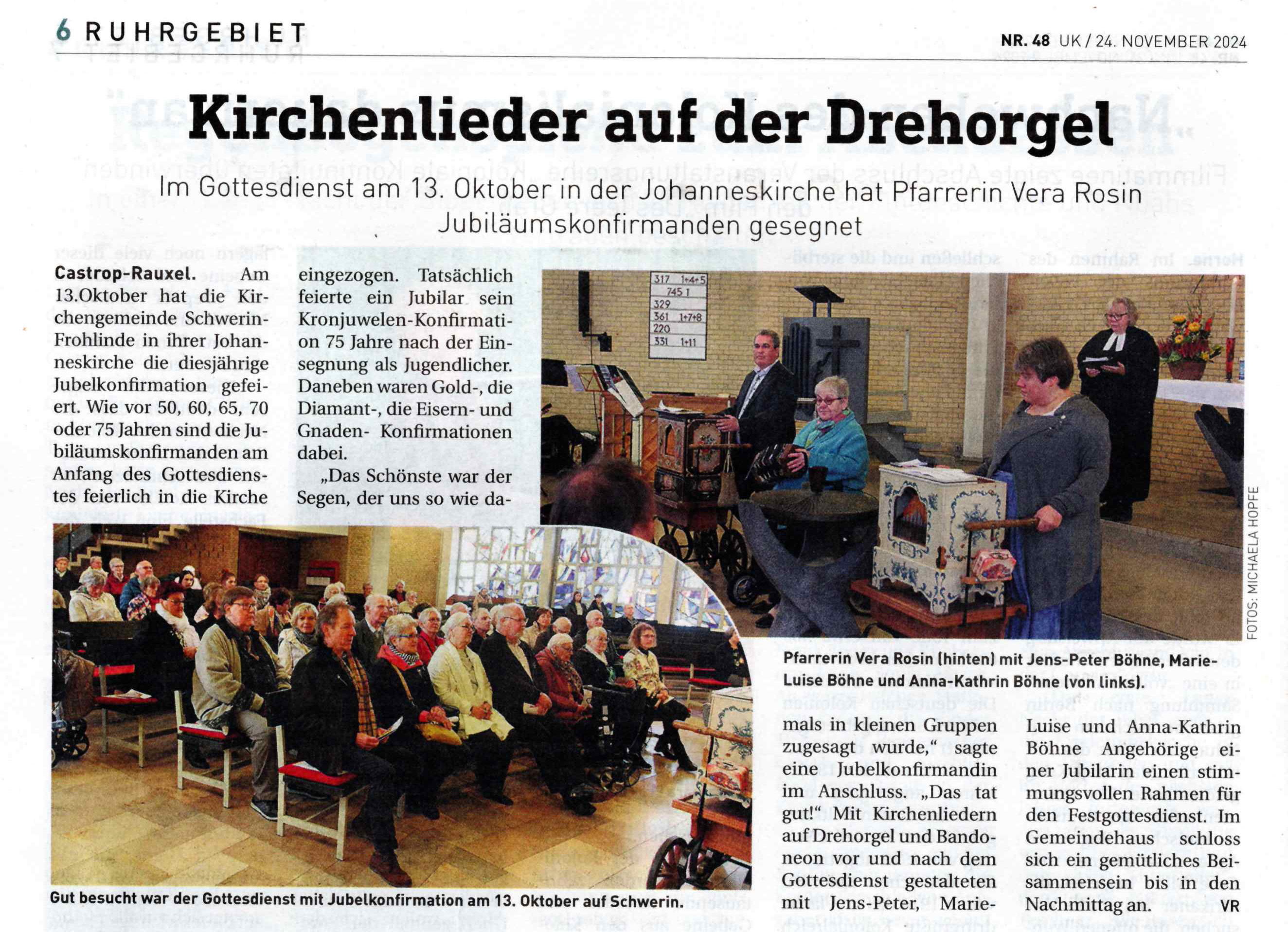 der Gottesdienst wird begleitet von dem Flötenkreis "Kirchenflöten" unter musikalischer Leitung von Bettina Oschmann