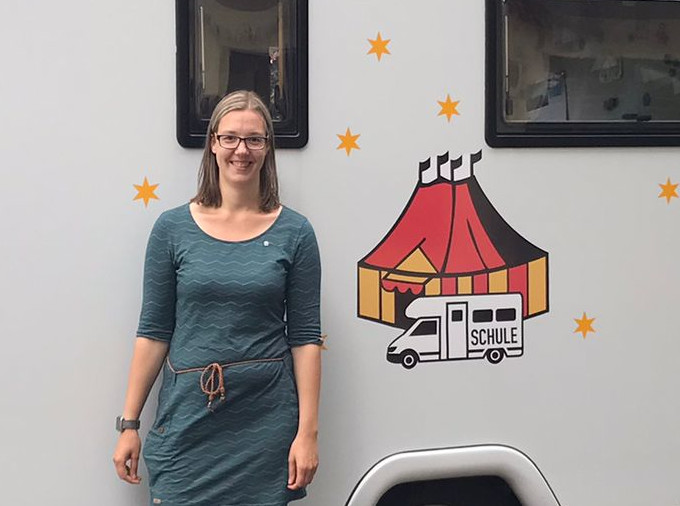 Annika Gluth, Lehrerin der „Schule für Circuskinder – in NRW“ kommt am Mittwoch, den 26.04.2023 von 15:00 Uhr bis 17:00 Uhr mit ihrem „rollenden Klassenzimmer“ vor das Gemeindehaus.